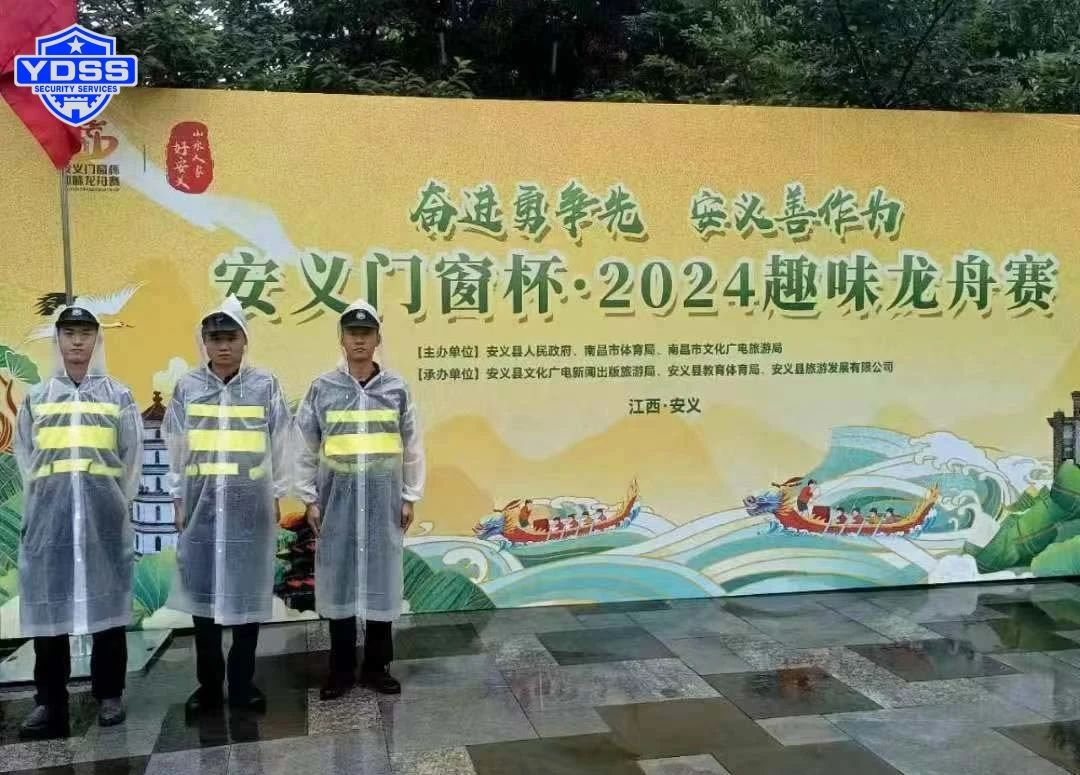 盡管天公不作美,陰雨連綿,南昌分公司的安保人員全部提前到崗,任由雨水、汗水浸濕衣衫,始終以飽滿的精神狀態(tài)護(hù)航賽事,確保賽事期間安全零事故,為本次龍舟賽增添了一抹最美的“安保景色”。
