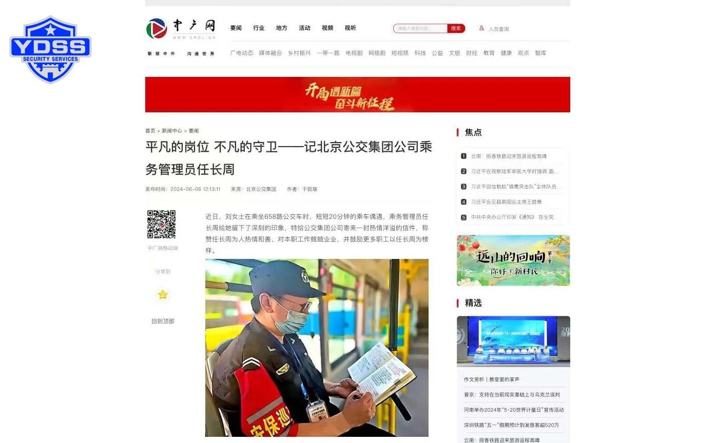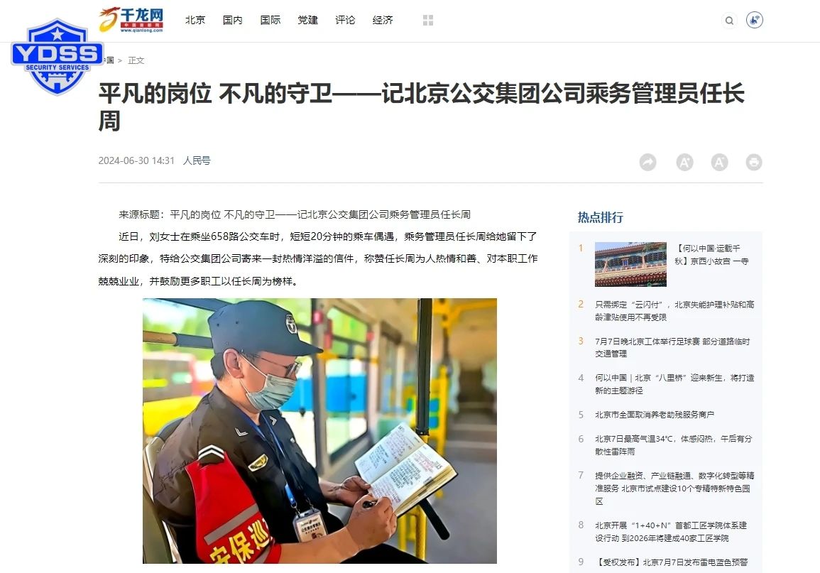 榜樣力量、鼓舞人心!近日,北京廣播電視臺(tái)科教頻道記者到北京銀盾保安服務(wù)有限公司駐北京公交集團(tuán)658路公交車場(chǎng)站,現(xiàn)場(chǎng)采訪乘務(wù)管理員任長(zhǎng)周同志。任長(zhǎng)周同志用實(shí)際行動(dòng)展示了“首都保安、為人民”的高尚情懷,展現(xiàn)了新時(shí)代保安服務(wù)人員的精神風(fēng)貌。先后在人民日?qǐng)?bào)、勞動(dòng)午報(bào)、中國(guó)日?qǐng)?bào)網(wǎng)、千龍網(wǎng)、北青網(wǎng)、北京日?qǐng)?bào)、中廣網(wǎng)等媒體報(bào)道,在社會(huì)上引起了強(qiáng)烈反響,有效提升了“銀盾保安”品牌形象。