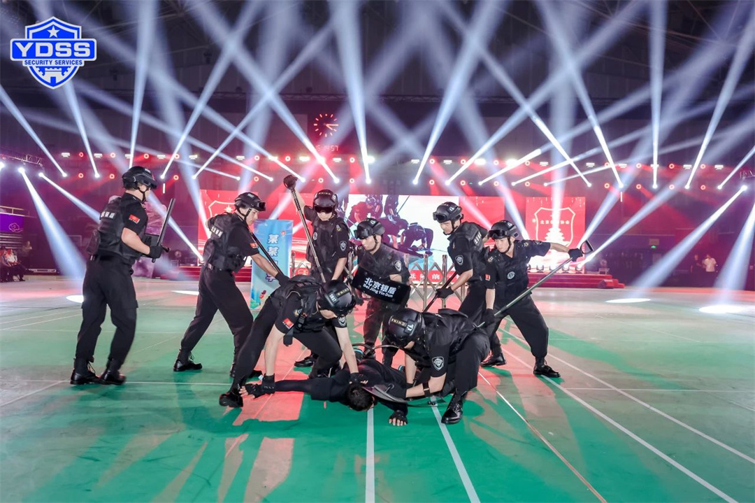 在素質(zhì)展示環(huán)節(jié),北京銀盾保安服務(wù)有限公司等5家保安公司分別表演了格斗術(shù)、安檢集體操、警棍盾牌術(shù)、防爆隊(duì)形演練和突發(fā)情況處置演練,充分展現(xiàn)了首都保安安保戰(zhàn)術(shù)技能。